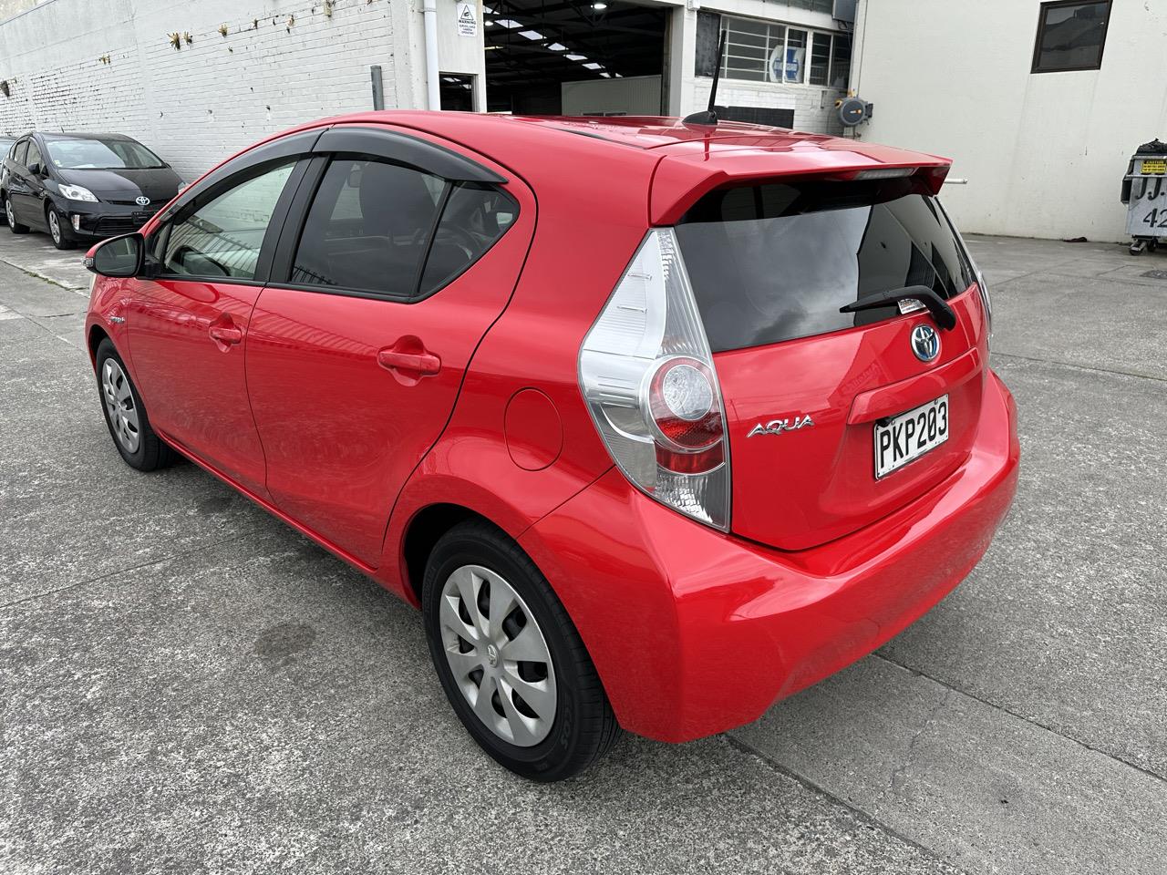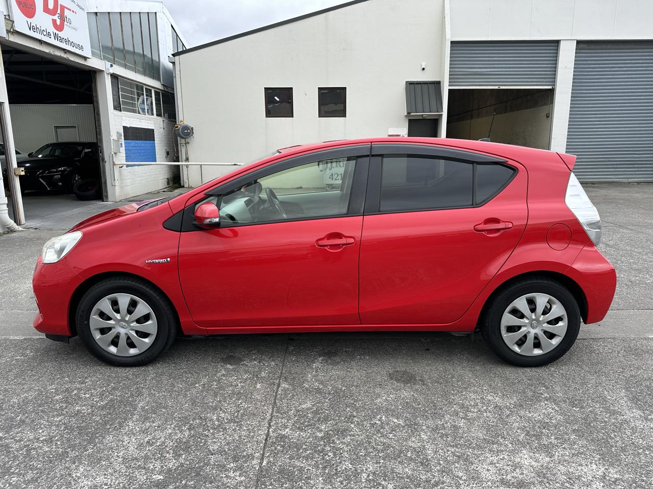 Discover the 2012 Toyota Aqua S Model, a sleek hatchback boasting a dark interior and all power windows for added convenience. Priced competitively at $8,950, this vehicle is equipped with a 1500cc hybrid engine, offering both efficiency and performance. With its striking red exterior and comfortable black & white cloth interior seating for five, this Aqua S Model is the epitome of style and practicality.